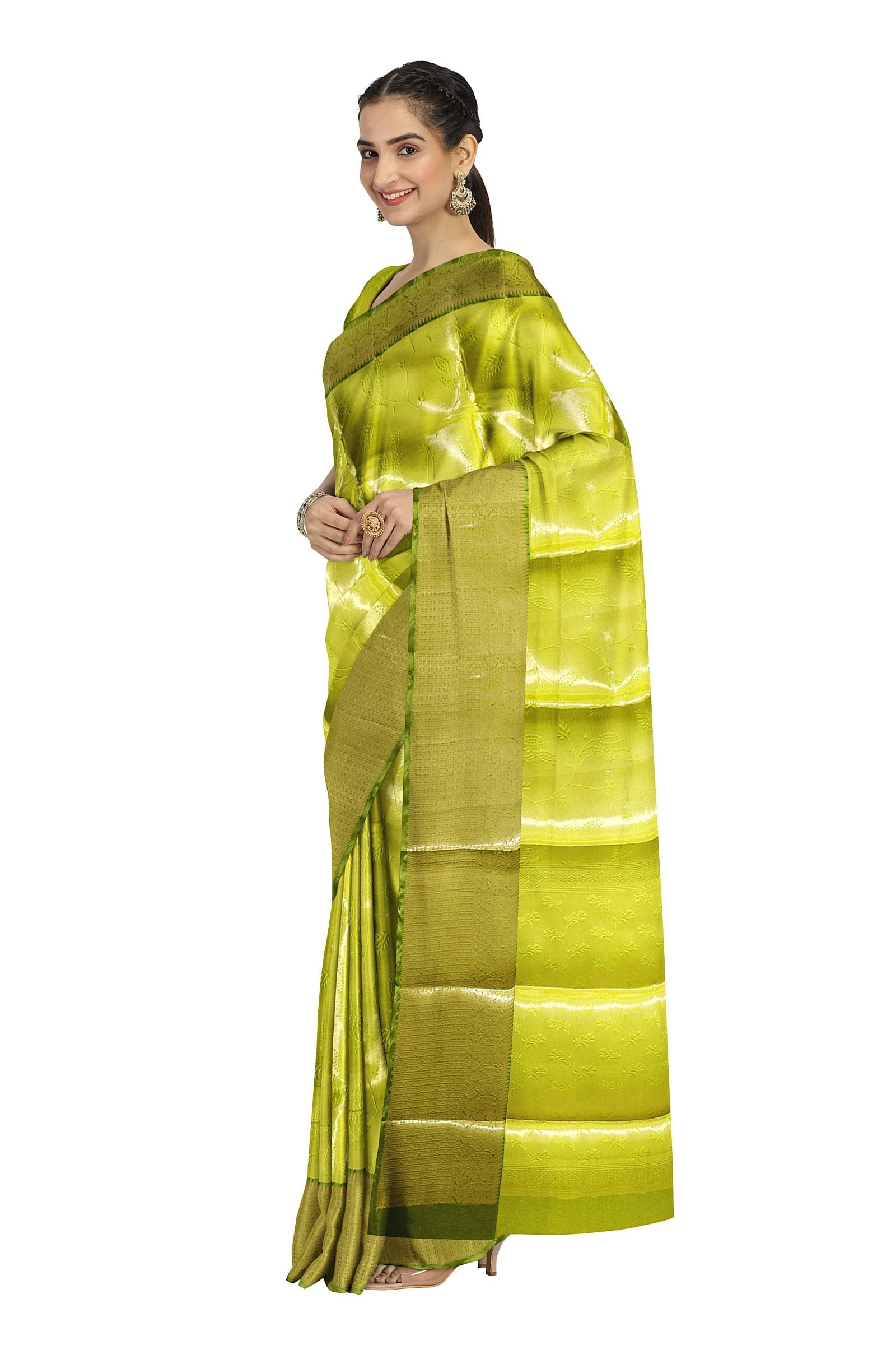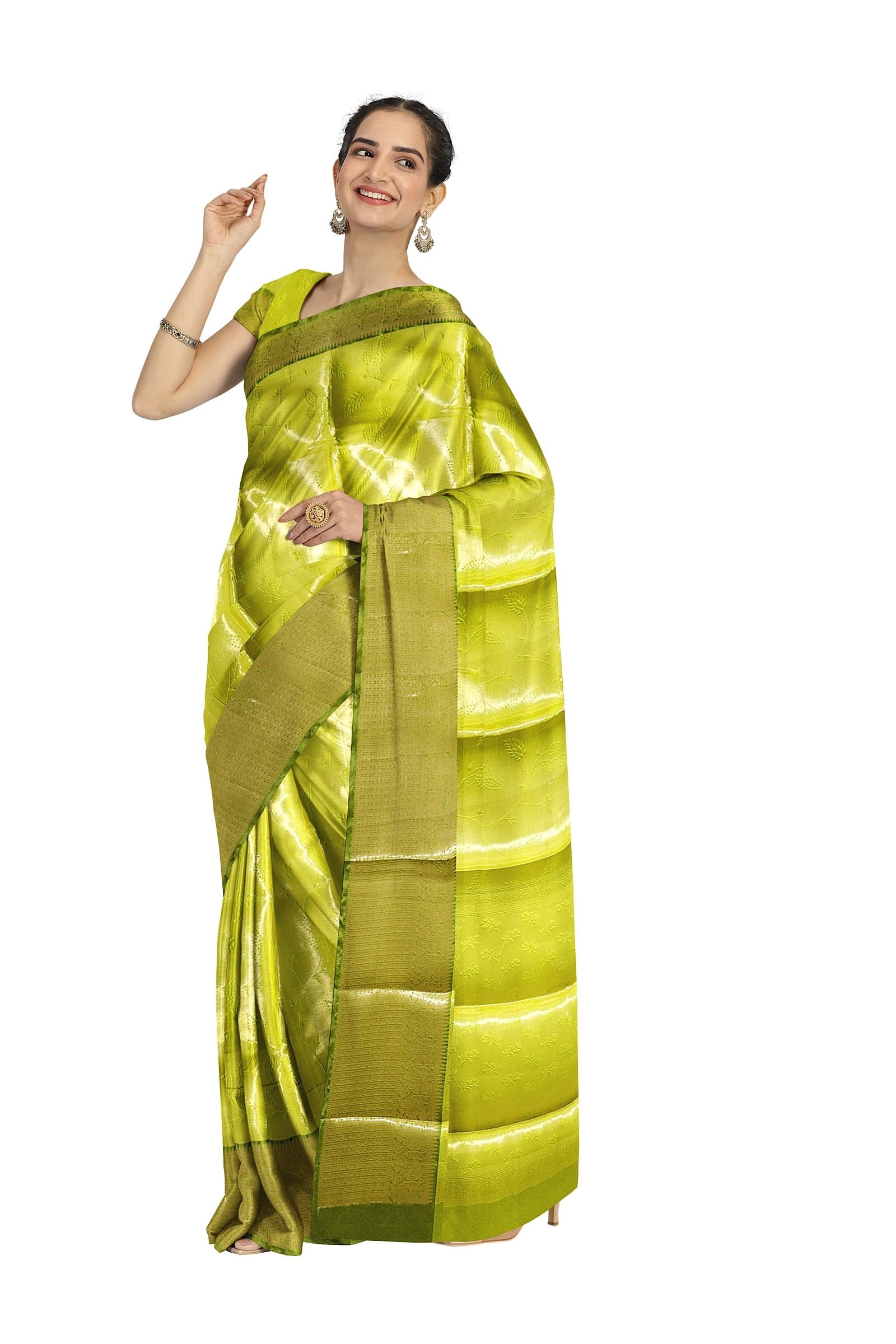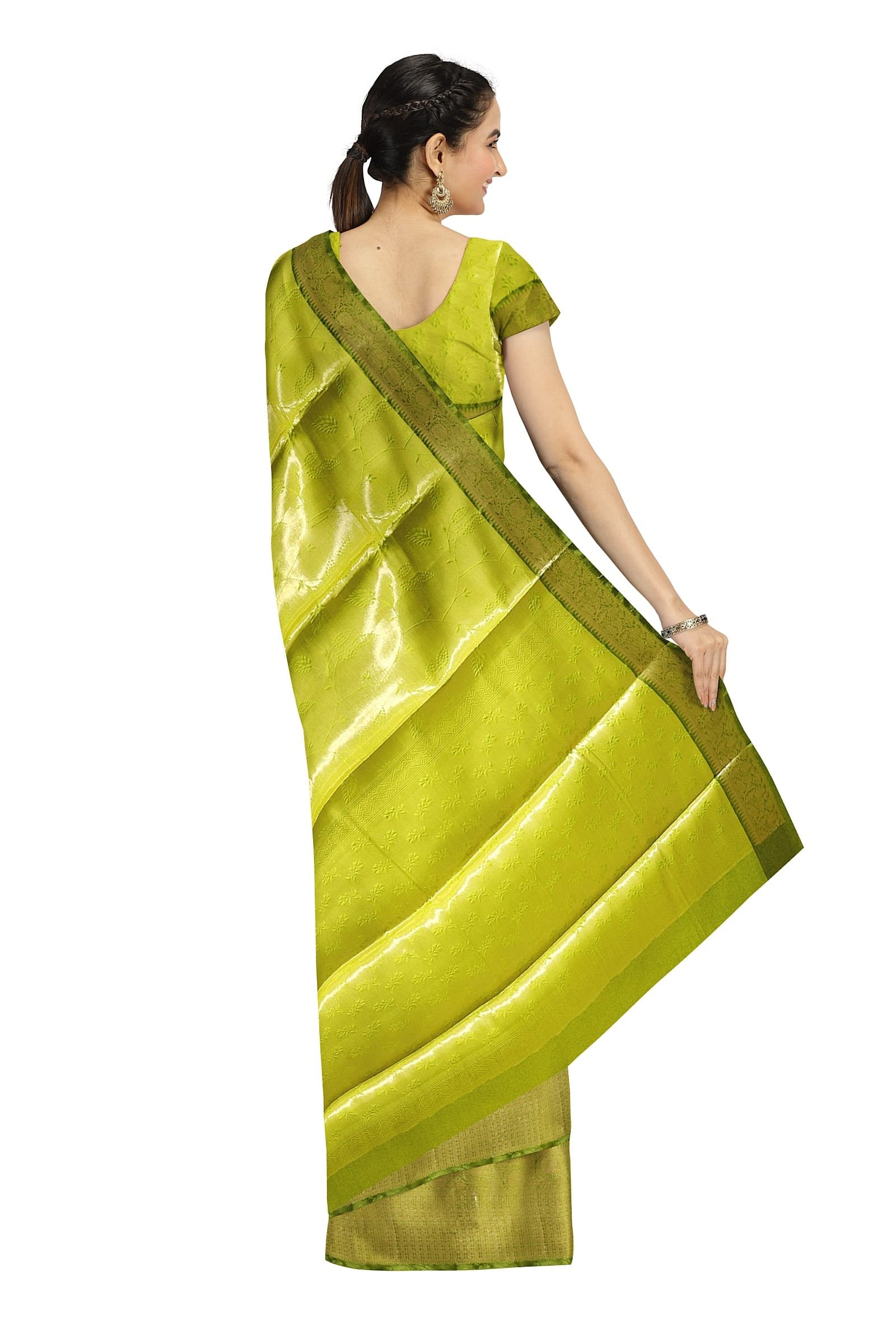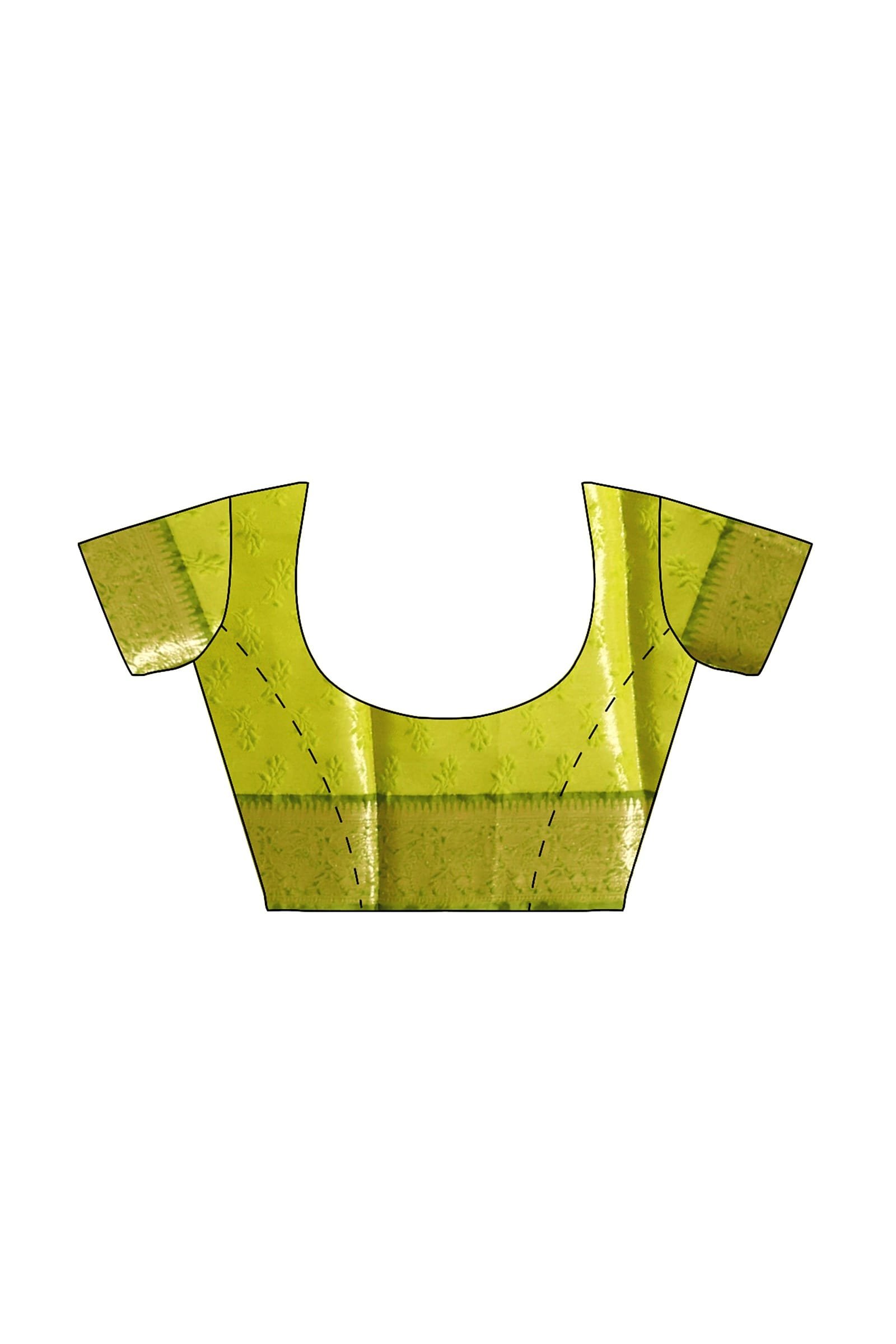 The saree comes with an unstitched blouse piece integrated into one end, which requires the user to detach it. Specifications: Total Length: 6.30 meters (consisting of 5.5 meters for the saree and 0.8 meters for the blouse piece). Width: Approximately 1.2 meters. For a closer look at the blouse piece, please check the last image, which offers a detailed view.