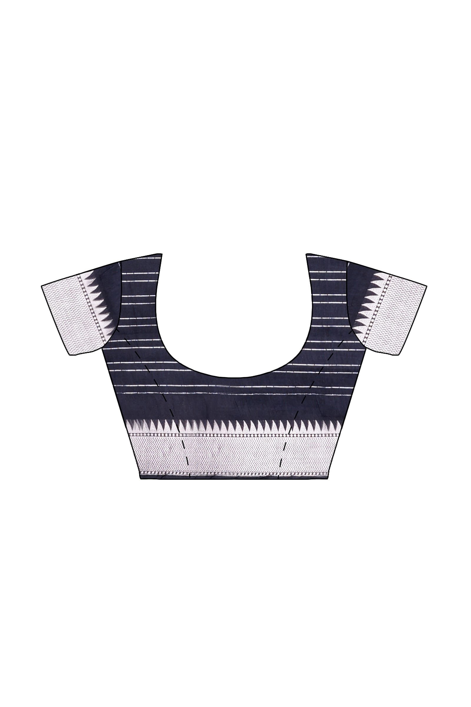 The saree comes with an unstitched blouse piece integrated into one end, which requires the user to detach it. Specifications: Total Length: 6.30 meters (consisting of 5.5 meters for the saree and 0.8 meters for the blouse piece). Width: Approximately 1.2 meters. For a closer look at the blouse piece, please check the last image, which offers a detailed view.