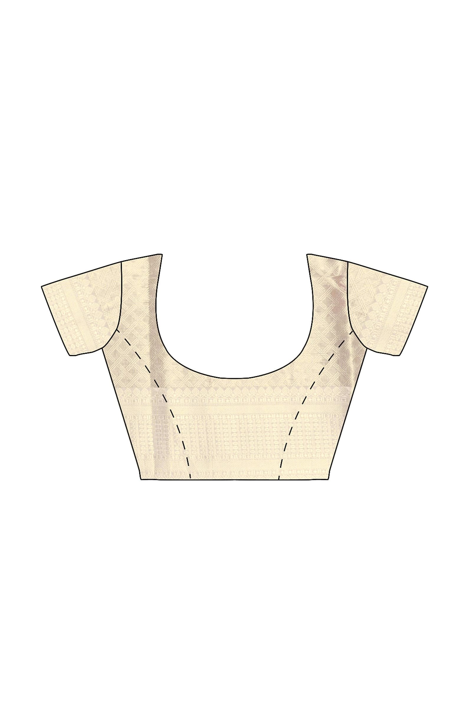 The saree comes with an unstitched blouse piece integrated into one end, which requires the user to detach it. Specifications: Total Length: 6.30 meters (consisting of 5.5 meters for the saree and 0.8 meters for the blouse piece). Width: Approximately 1.2 meters. For a closer look at the blouse piece, please check the last image, which offers a detailed view.