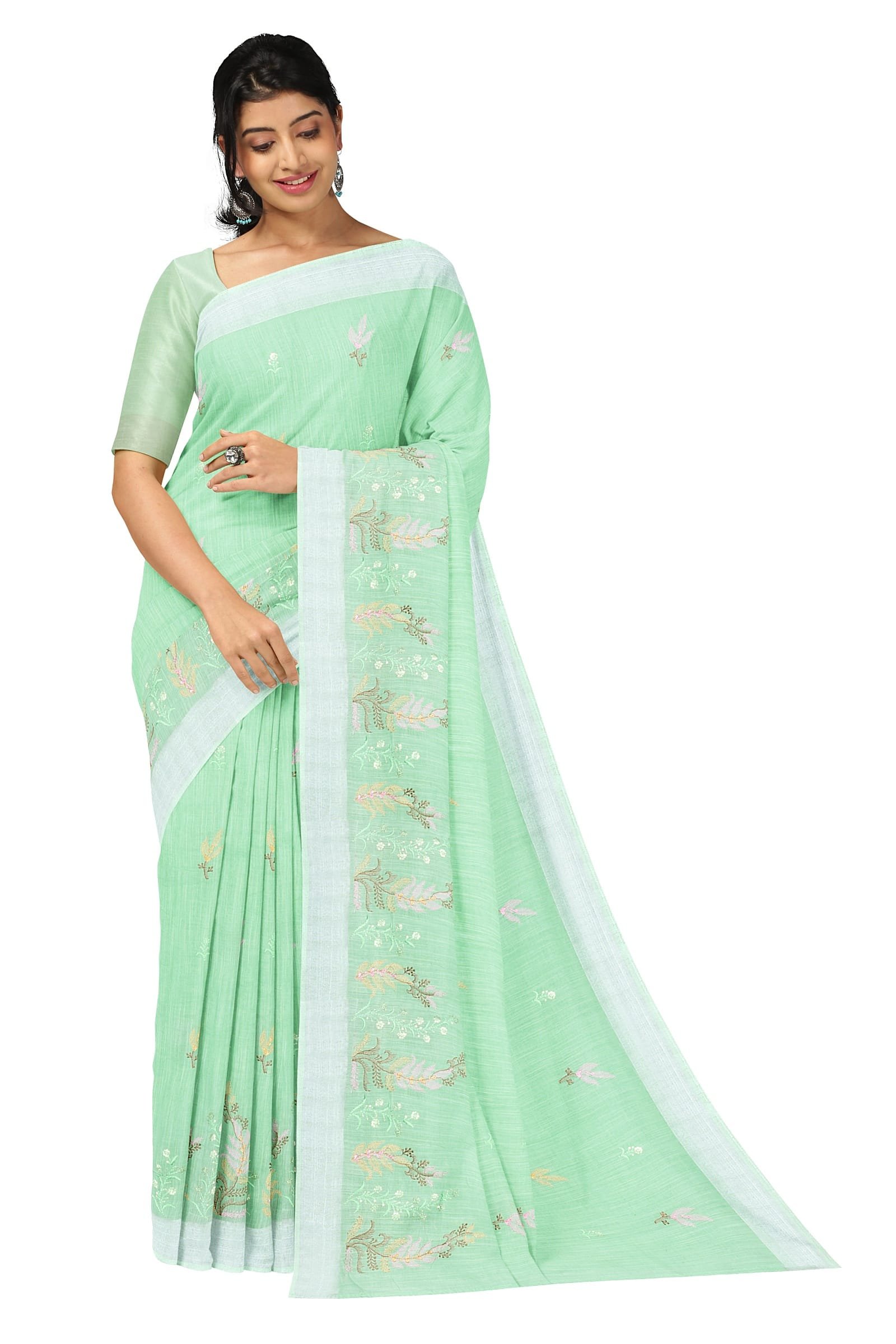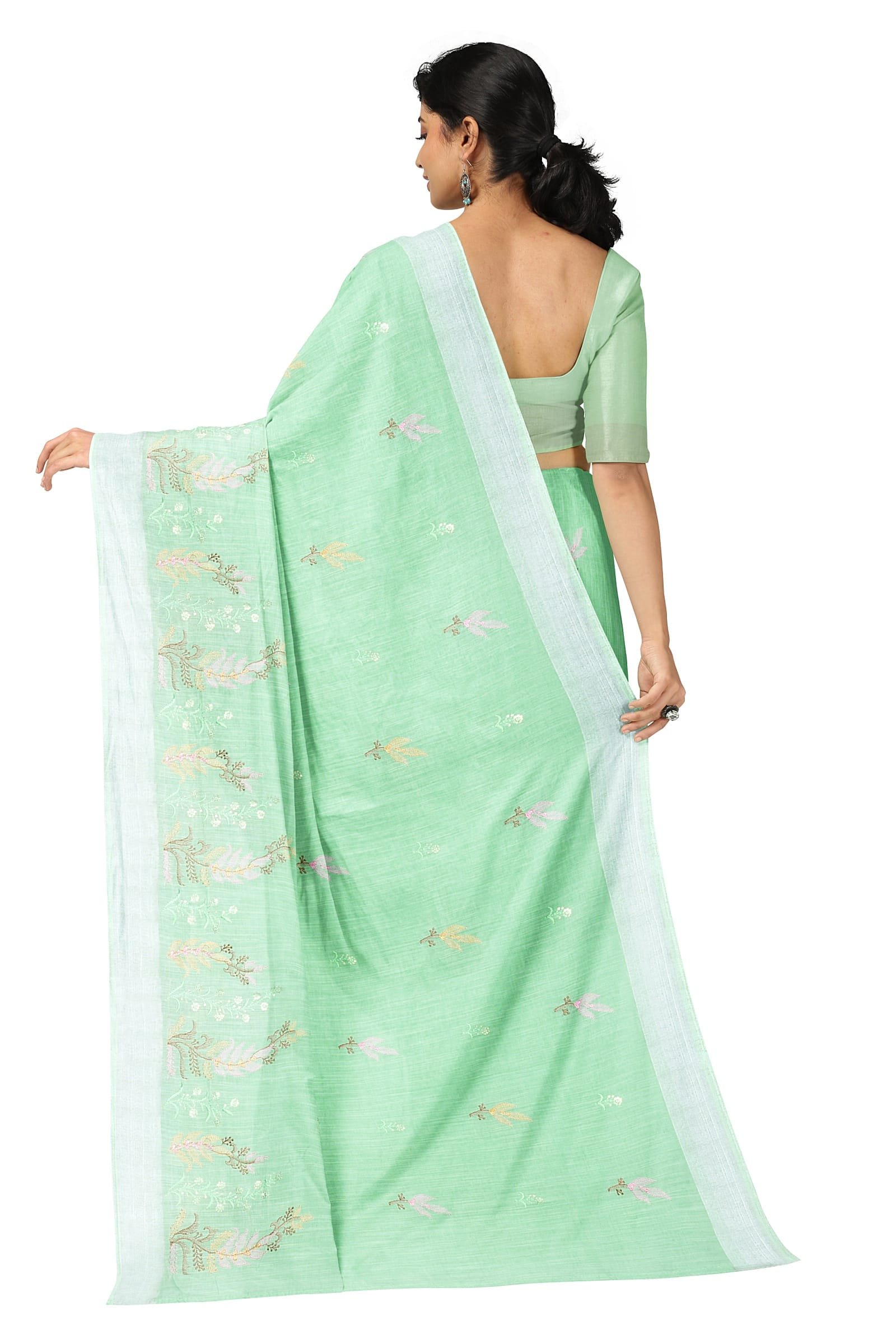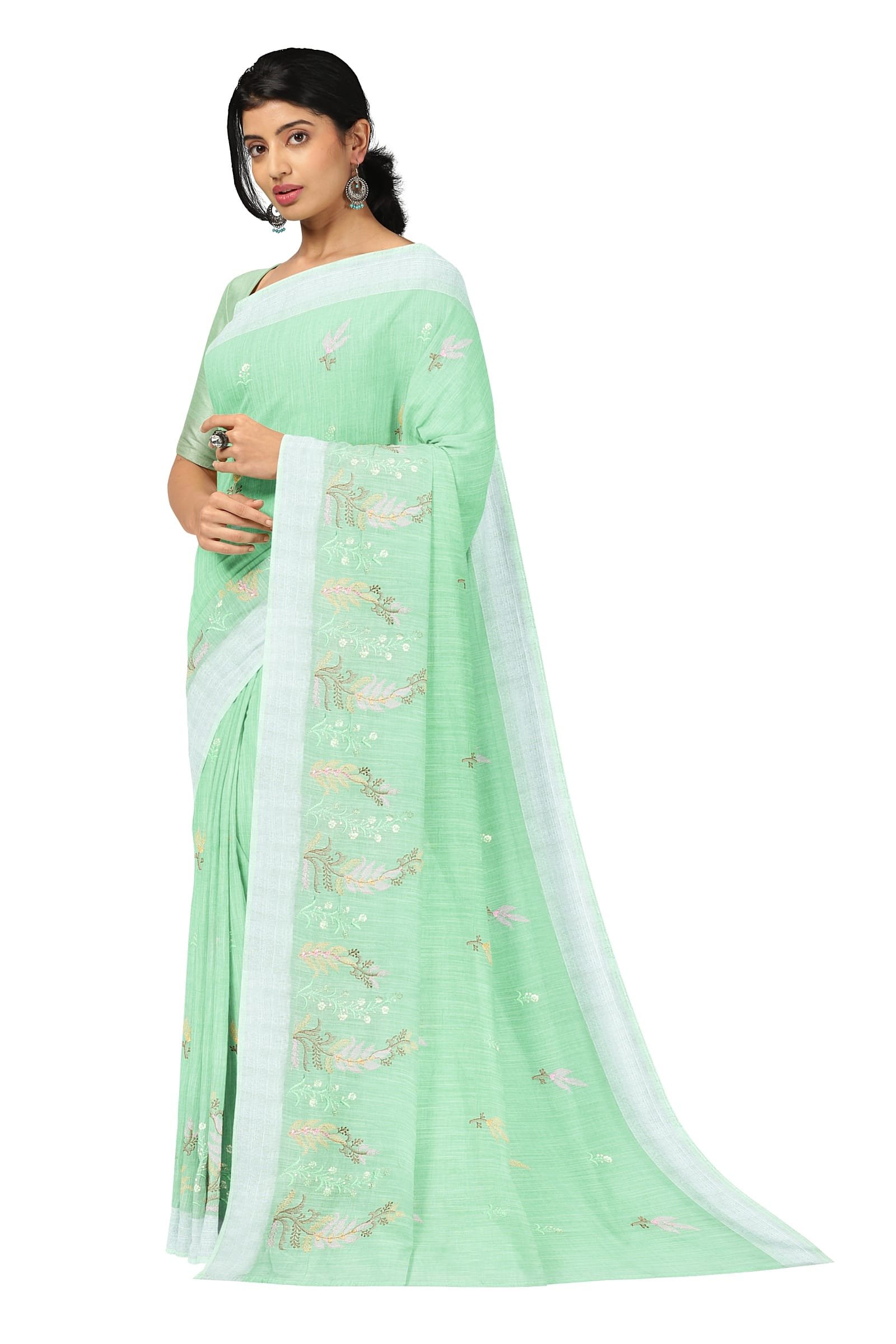 Bhagalpuri linen blend sarees embody a beautiful blend of solid, earthy tones that evoke a sense of grounding and elegance. Enhanced with metallic zari borders, intricate woven patterns, or subtle prints, these sarees carry a timeless charm. The inclusion of a contrast blouse piece or border infuses a contemporary flair into the traditional design, celebrating both heritage and modernity.