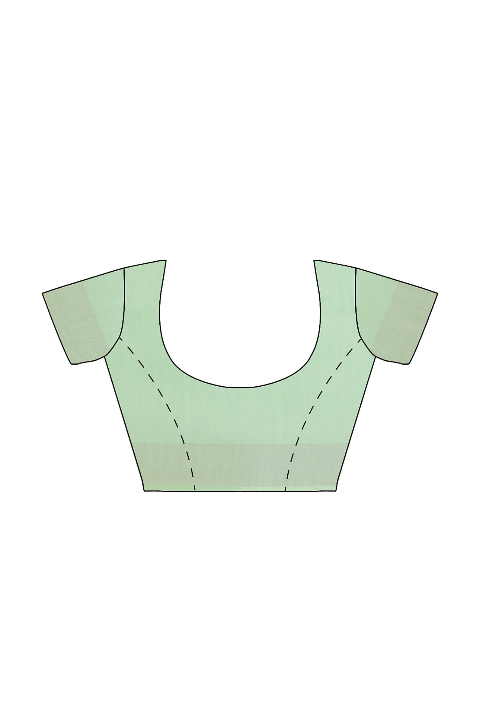 The saree comes with an unstitched blouse piece integrated into one end, which requires the user to detach it. Specifications: Total Length: 6.30 meters (consisting of 5.5 meters for the saree and 0.8 meters for the blouse piece). Width: Approximately 1.2 meters. For a closer look at the blouse piece, please check the last image, which offers a detailed view.