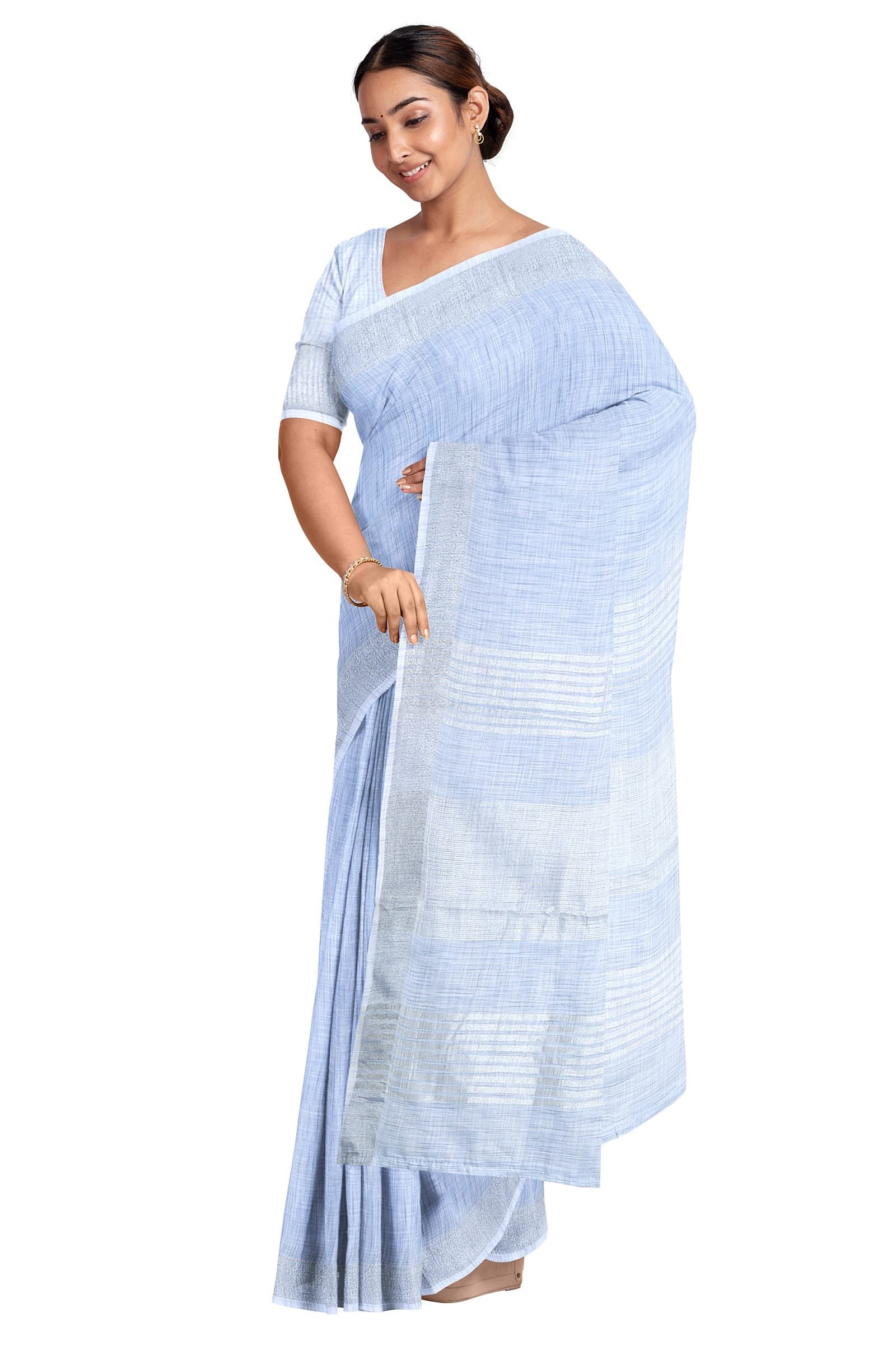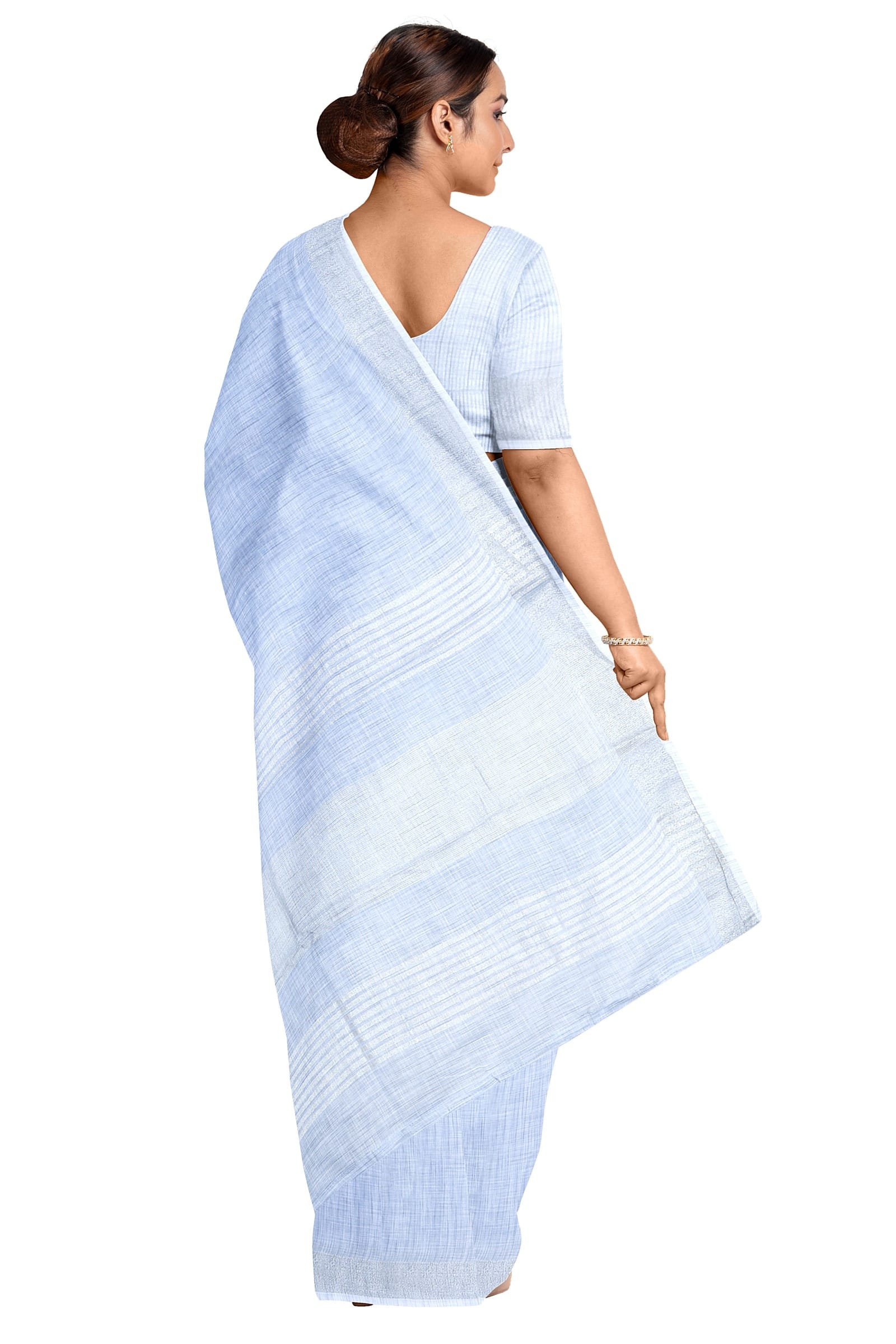 The saree comes with an unstitched blouse piece integrated into one end, which requires the user to detach it. Specifications: Total Length: 6.30 meters (consisting of 5.5 meters for the saree and 0.8 meters for the blouse piece). Width: Approximately 1.2 meters. For a closer look at the blouse piece, please check the last image, which offers a detailed view.