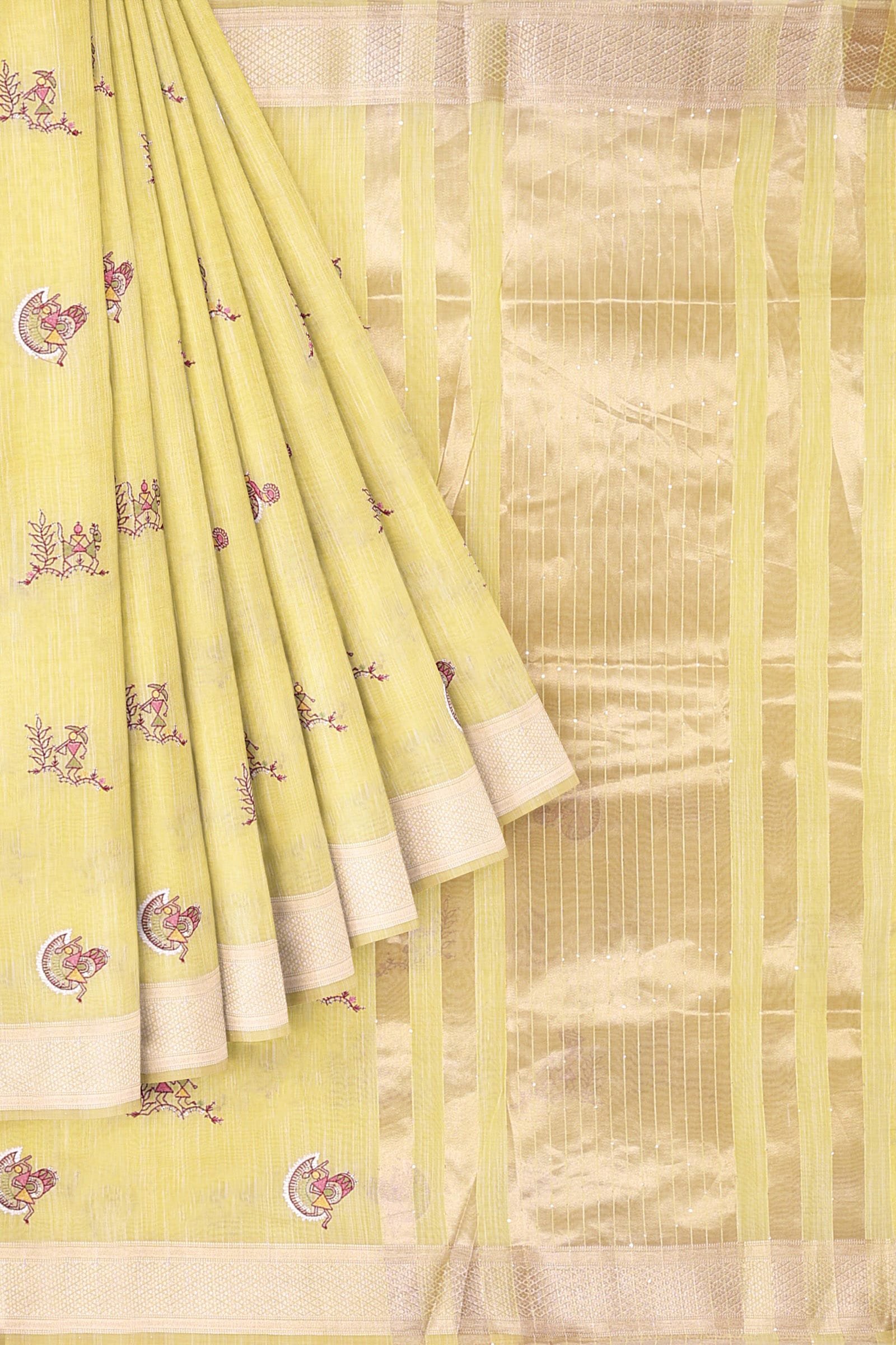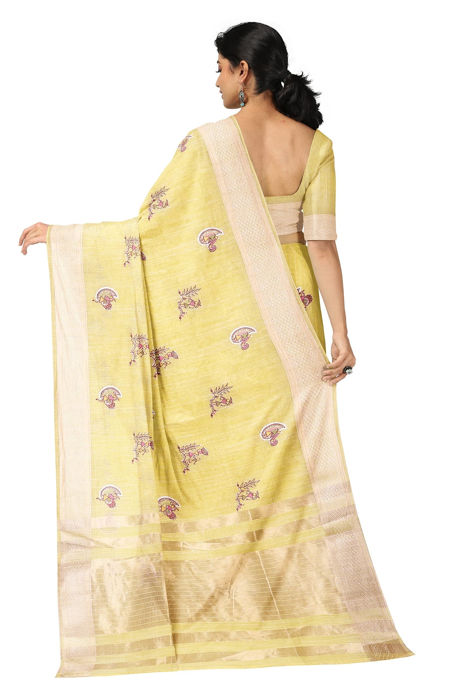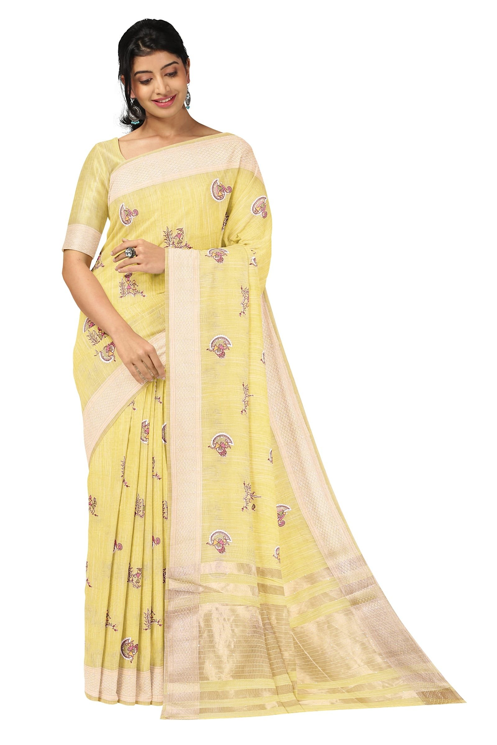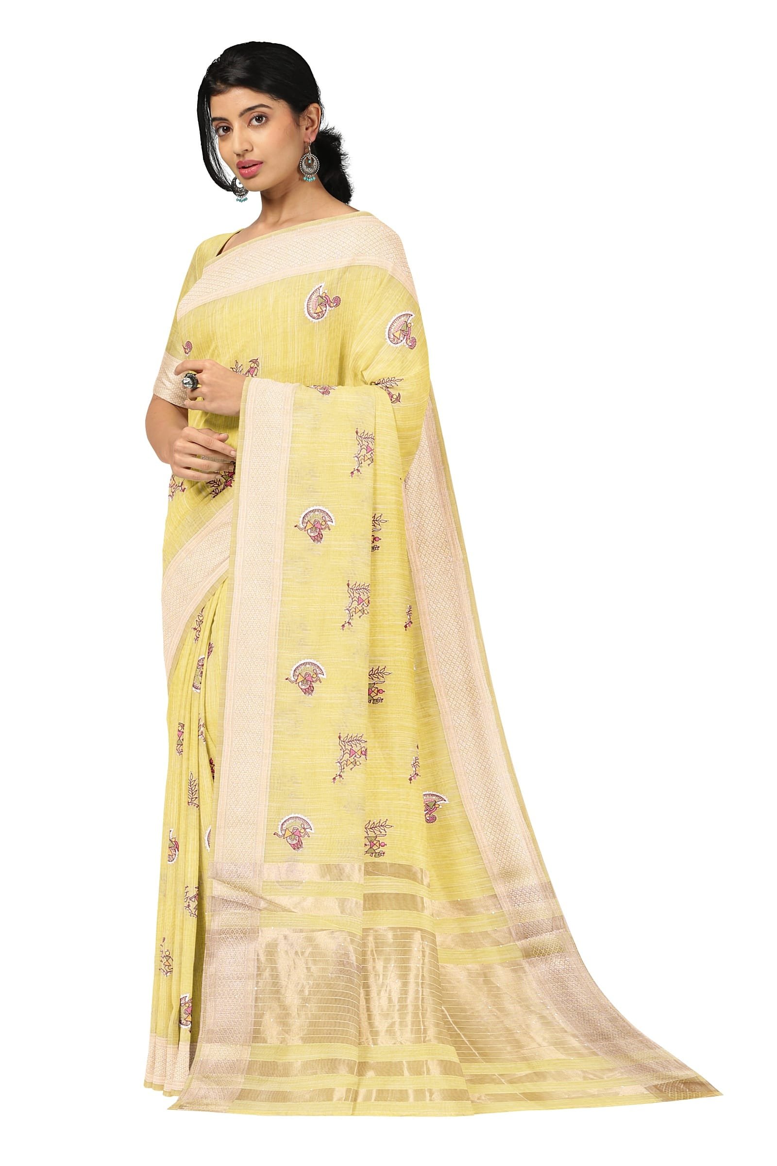 The Kota tissue saree embodies a graceful fusion of lightweight elegance and intricate artistry. Adorned with vibrant floral digital prints or delicate thread work/embroidery, it radiates a charm that is both modern and timeless.