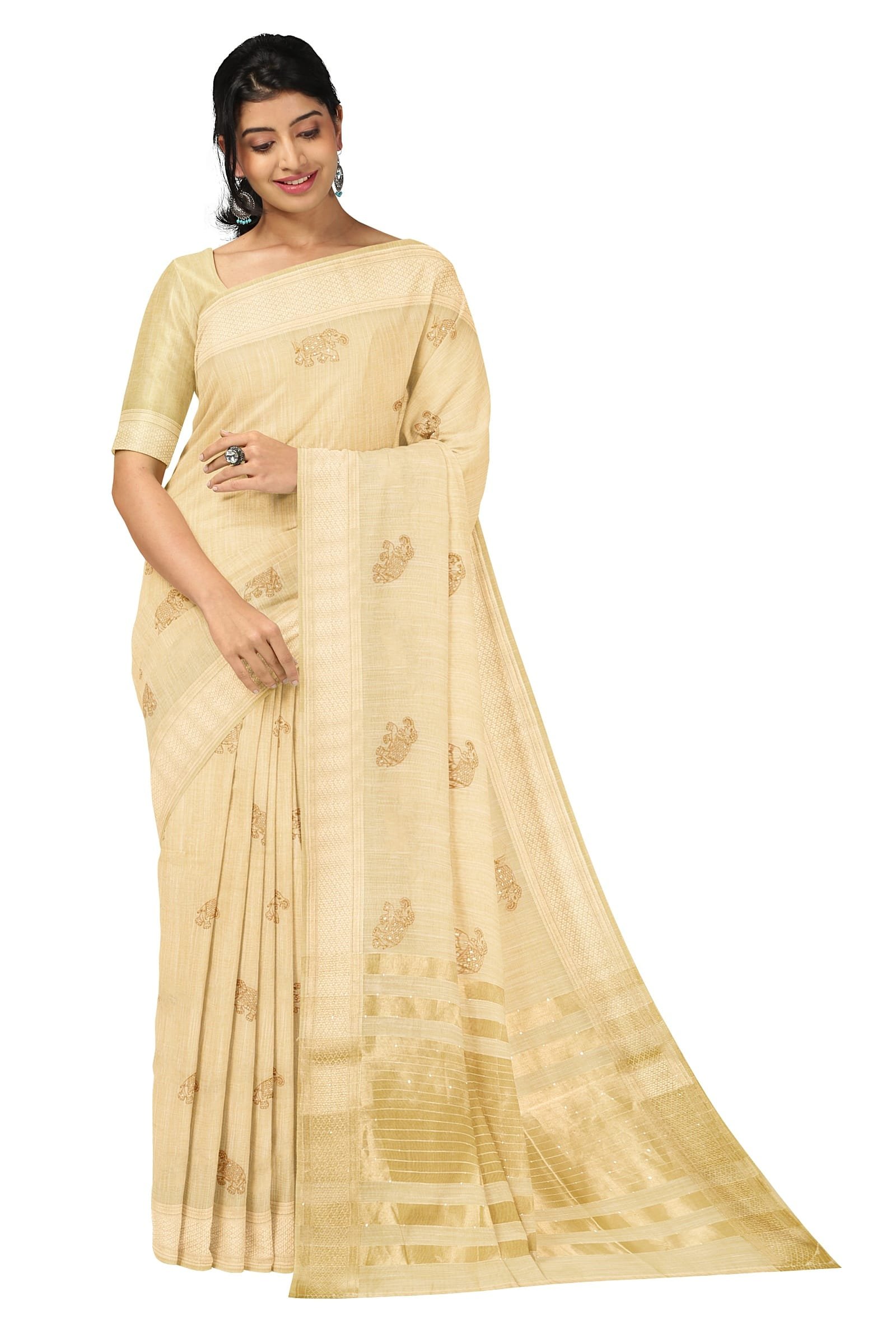 The Kota tissue saree embodies a graceful fusion of lightweight elegance and intricate artistry. Adorned with vibrant floral digital prints or delicate thread work/embroidery, it radiates a charm that is both modern and timeless.