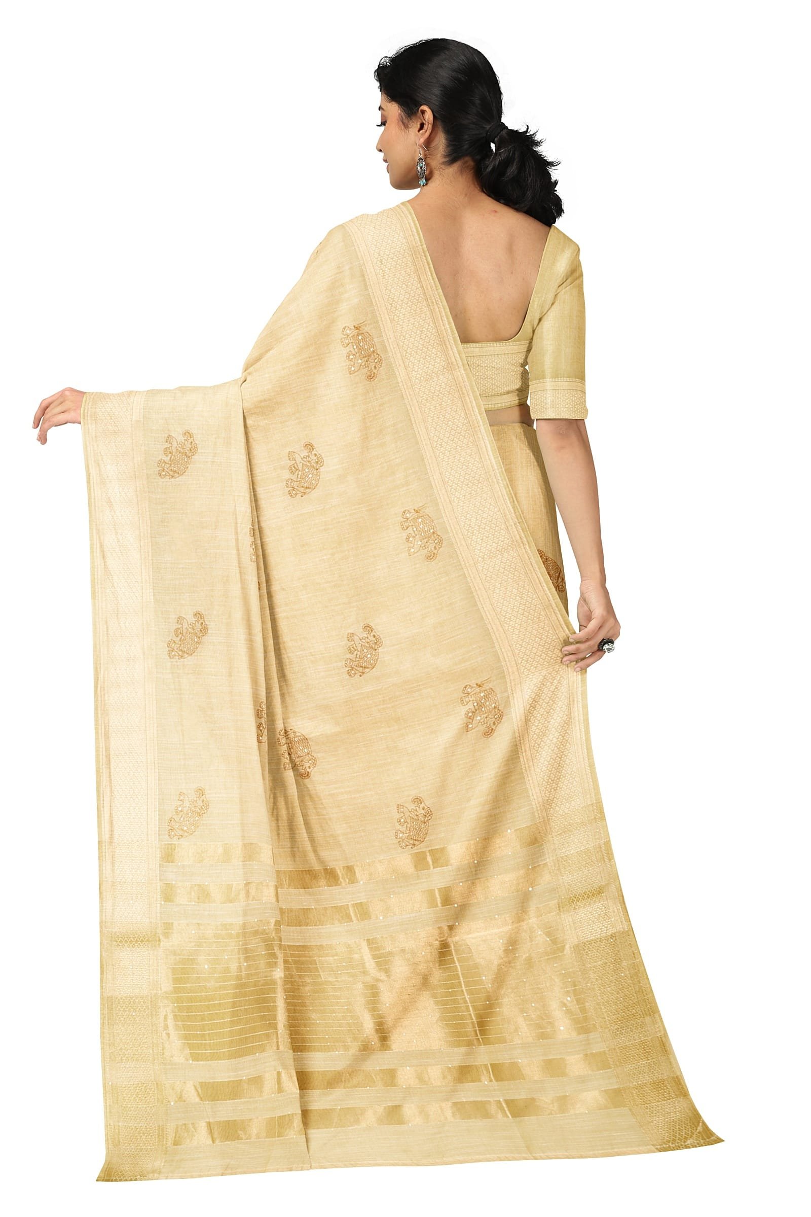 The saree comes with an unstitched blouse piece integrated into one end, which requires the user to detach it. Specifications: Total Length: 6.30 meters (consisting of 5.5 meters for the saree and 0.8 meters for the blouse piece). Width: Approximately 1.2 meters. For a closer look at the blouse piece, please check the last image, which offers a detailed view.