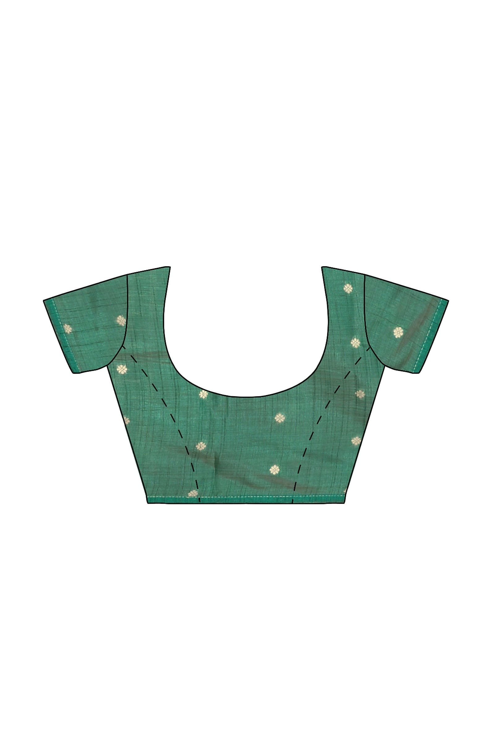 The saree comes with an unstitched blouse piece integrated into one end, which requires the user to detach it. Specifications: Total Length: 6.30 meters (consisting of 5.5 meters for the saree and 0.8 meters for the blouse piece). Width: Approximately 1.2 meters. For a closer look at the blouse piece, please check the last image, which offers a detailed view.